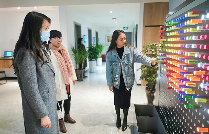昆明市總工會打造的春城職工心理減壓賦能服務(wù)中心是服務(wù)全市職工心理減壓賦能的智能化融合服務(wù)平臺,融合了大數(shù)據(jù)、人工智能、心理輕咨詢、心理測評等前沿技術(shù),是為職工提供人才發(fā)展綜合素質(zhì)賦能服務(wù)的一站式綜合體。在實地參觀了春城職工心理減壓賦能服務(wù)中心,聽取了講解員對“浸潤式團輔”、“身心交互探索”、“心靈方艙”、“體感運動減壓區(qū)”、“心靈會客廳”、“人際互助支持區(qū)”等功能區(qū)域,“心理傾訴及咨詢”、“工作坊”、“工建劇本殺”、“團體心理輔導(dǎo)”等特色活動的介紹后,參觀人員結(jié)合自身喜好和實際需求,積極體驗了“智能吶喊宣泄儀”、“房、樹、人”繪畫測評和職業(yè)方向的“團體心理輔導(dǎo)”等項目,“團體心理輔導(dǎo)”小組以“五指為山”、“惡魔與天使”等游戲和圍坐對話的方式,在輕松愉悅的氛圍中讓大家敞開心扉、暢所欲言,幫助職工身心舒展、思想放松。