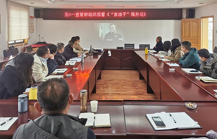 2月27日,五〇一直管項(xiàng)目部班子成員、科室負(fù)責(zé)人、項(xiàng)目經(jīng)理等18人在會(huì)議室集中觀看了《“官油子”現(xiàn)形記》及《問“劍”破局》第二集《酒局中人》。