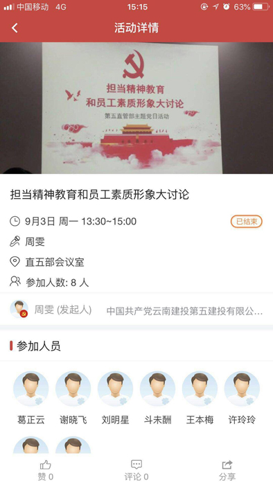 技術支持: 方森科技9月3日下午,直五部黨支部通過云嶺APP“互聯(lián)網+黨建”平臺開展主題黨日活動,開展“擔當精神和員工素質形象大討論”活動,22名黨員干部職工參加主題黨日活動。