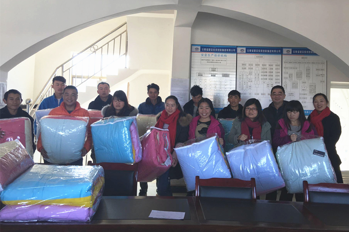 技術(shù)支持: 方森科技 2016年12月,云南已進(jìn)入冬季,路橋一部嚴(yán)格按照公司文件規(guī)定及時(shí)籌措資金開展“關(guān)愛(ài)員工、冬日送溫暖”活動(dòng)。12月30日,直管部書記將一床床被子送到一線職工手中,送去溫暖的同時(shí)給一線職工送去了新年的祝福,并囑咐項(xiàng)目部做好冬季施工技術(shù)措施確保工程質(zhì)量。
