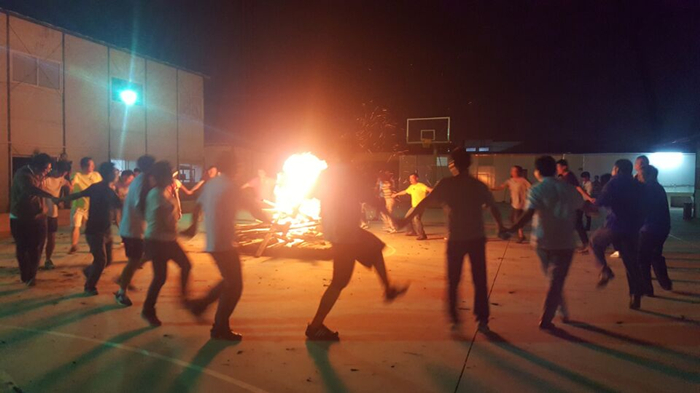 夜幕降臨,伴隨著激動的心情火把節(jié)點火儀式開始了。天威云變項目部甲方、監(jiān)理及五〇八直管部天威云變項目部管理人員、海源財富中心項目部管理人員、二線職工共同舉起象征希望、幸福、健康的火把,點燃了項目球場中央的篝火。升騰的火焰將活動推向高潮,大家圍繞在篝火旁,手拉手跳起熱情奔放的舞蹈《七月火把節(jié)》,現(xiàn)場一片歡騰。
