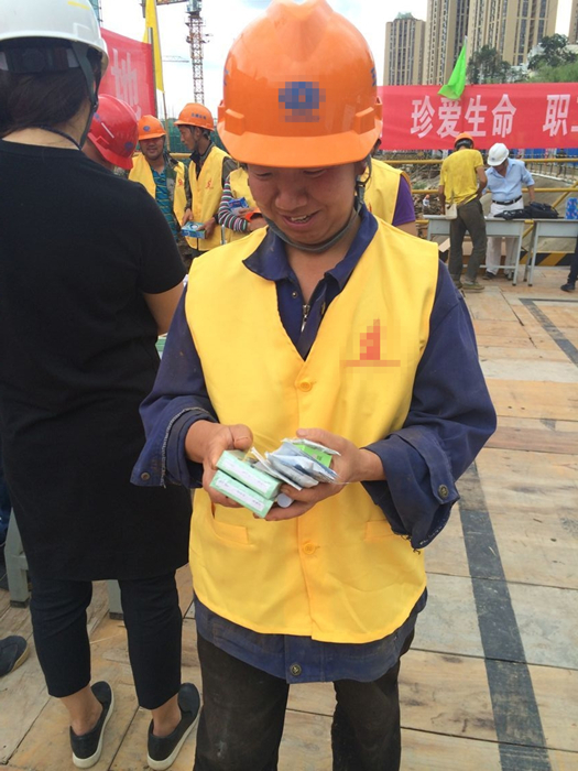 公司結(jié)合禁毒宣傳活動(dòng)同時(shí)開(kāi)展送清涼活動(dòng),退管會(huì)劉秀偉醫(yī)生免費(fèi)為現(xiàn)場(chǎng)職工進(jìn)行心臟、脈搏、血壓等常規(guī)體檢,開(kāi)展了防流感咨詢,宣傳了高血壓、高血脂、糖尿病等常見(jiàn)慢性疾病的預(yù)防保健知識(shí)。公司工會(huì)、五〇八直管項(xiàng)目部、五〇四直管項(xiàng)目部、第三安裝直管項(xiàng)目部一同為項(xiàng)目管理一線管理人員和勞務(wù)班組人員發(fā)放小風(fēng)扇、清涼茶、藿香正氣水、板藍(lán)根、風(fēng)油精、清涼油、保濟(jì)丸等十幾種預(yù)防夏季高溫中暑的藥物。還發(fā)放了創(chuàng)可貼、醫(yī)用酒精、棉球等日常外用藥品和200盒計(jì)生用品。