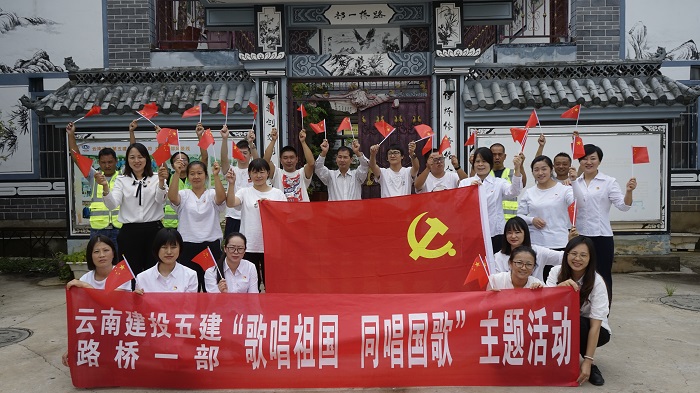 “我和我的祖國,一刻也不能分割……”悠揚(yáng)的音樂聲響起,路橋一部二線員工舞動著五星紅旗,走出辦公室,在直管部門前集合,齊聲合唱《義勇軍進(jìn)行曲》《建投之歌》和《我和我的祖國》。8月15日,路橋一部直管部所在地及各項目部駐地開展了“歌唱祖國,同唱國歌”主題活動,寧蒗、施甸、麗江、大理、昆明,幾個項目部與直管部異地同音,用自己的歌聲唱出了對祖國的美好祝愿。