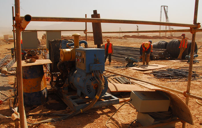 為進一步搞好A2標段的950多棵人工挖孔樁施工,公司組建了由公司直接管理的新機場工程項目部。工地上沒有水,施工用水和生活用水就購買從7-8公里以外拉來的水,項目部在各個施工點搭建了十幾個臨時水池蓄水,以保證施工正常進行;工地上沒有電,為了保證施工用電,工地上自備了多臺柴油發(fā)電機發(fā)電 ;春節(jié)后進入昆明的多風(fēng)季節(jié),久旱無雨的新機場工地上,到處塵土飛揚。項目部為每一個人購置了口罩,不管工地上氣溫多高,都帶著口罩作業(yè),全體人員天天都灰頭土臉地奮戰(zhàn)在工地上。