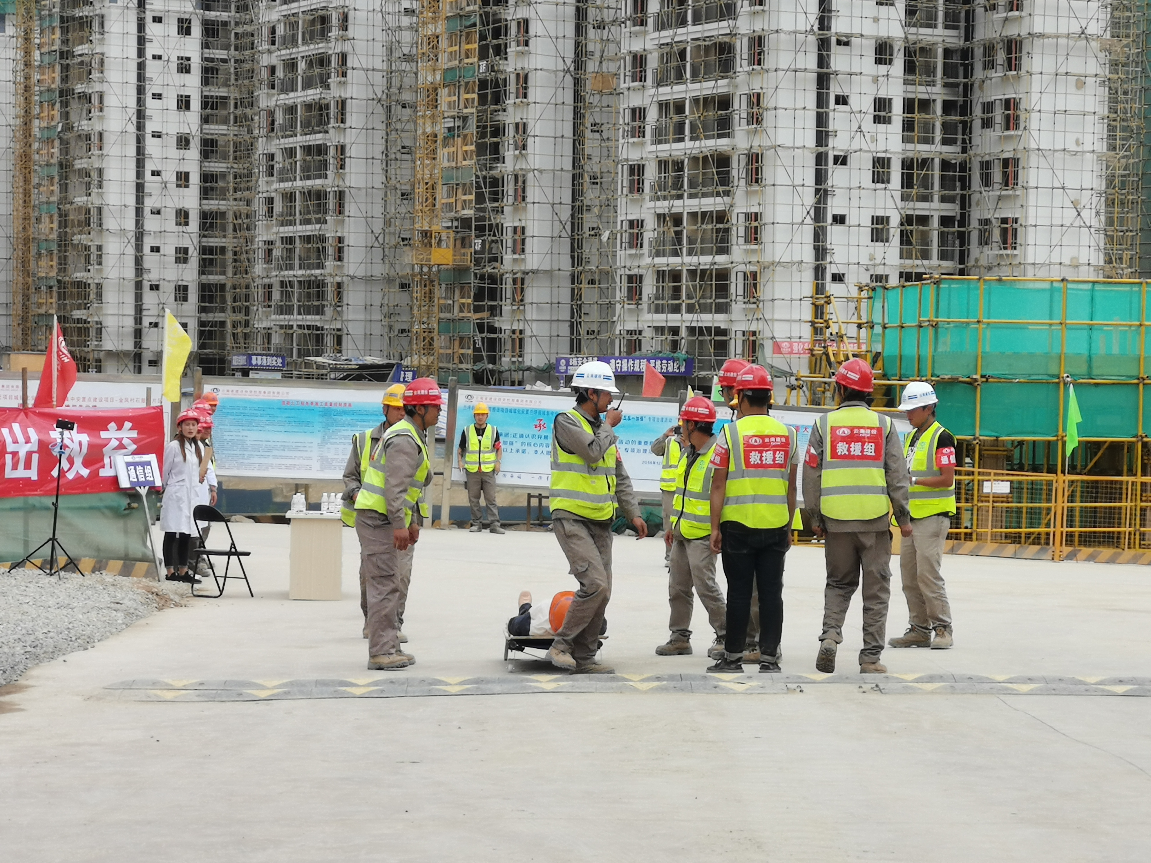 當(dāng)施工人人員高處作業(yè)不慎摔落時(shí),現(xiàn)場要采取搶險(xiǎn)、傷員搶救、保護(hù)現(xiàn)場等多個(gè)步驟。從高空墜落事故發(fā)生到傷員搶救、人員緊急疏散、設(shè)置警戒、指揮、搶險(xiǎn)組維護(hù)現(xiàn)場秩序、救護(hù)組人員將傷員轉(zhuǎn)移到安全地點(diǎn)、并對傷員進(jìn)行現(xiàn)場救護(hù)、救援車輛將傷員送往醫(yī)院到事故搶險(xiǎn)救援完畢,整個(gè)演練活動(dòng)分工明確、任務(wù)清晰、秩序井然,圓滿完成。