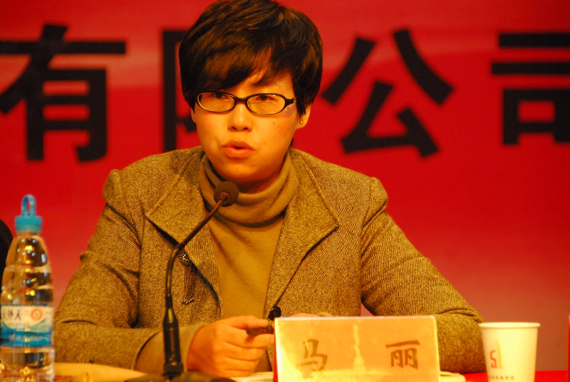 公司工會主席馬麗在會上講話