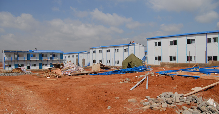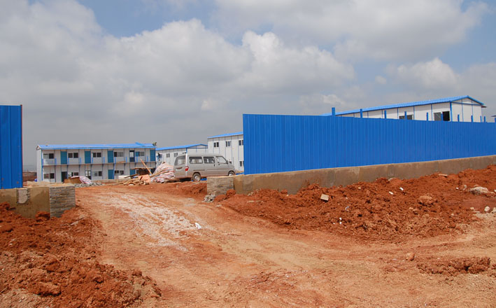 A3 臨設(shè)施工進(jìn)行中。背景是先期開(kāi)工、已在進(jìn)行主體結(jié)構(gòu)施工的航站樓工程。