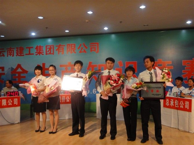 在安全生產(chǎn)月來臨之際,集團(tuán)公司組織安全生產(chǎn)知識競賽。五建公司工會、團(tuán)委高度重視,積極組織,在全司范圍內(nèi)多方篩選,選出4名優(yōu)秀管理人員組成公司代表隊。 6月10日,五建公司代表隊參加小組賽角逐進(jìn)入決賽。6月18日下午在與進(jìn)入決賽的六家兄弟單位較量中獲得決賽第二名。
