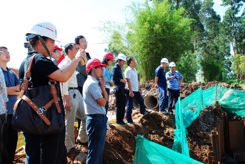 2010年6月9日,由公司工程部組織公司各直管部主任工、技術(shù)科長參觀了我司正在建設(shè)中的環(huán)湖截污工程。公司總工程師焦倫杰在現(xiàn)場向參觀人員詳細介紹了工程詳細情況及施工技術(shù)重點、難點,大家也都積極的提出個人的意見。