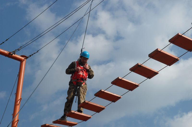 參訓(xùn)人員在訓(xùn)練學(xué)校專業(yè)培訓(xùn)師帶領(lǐng)下,完成了“空中浪橋”、“相依為命”、“電網(wǎng)穿越”、“急速60秒”、“七巧板”、“叢林對抗”等以團隊建設(shè)為主題的課程,讓大家學(xué)到了團隊運作協(xié)調(diào)高效的一些準(zhǔn)則和方法,樹立戰(zhàn)勝困難的信心和勇氣。