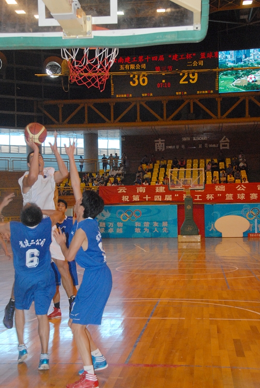 圖為男隊(duì)決賽現(xiàn)場(chǎng) 五公司(白)VS二公司(藍(lán))