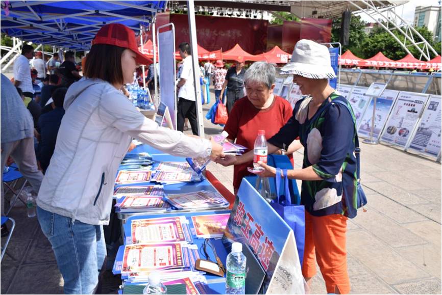 6月14日下午,路橋四部安全部員工代表彌玉高速參加了駐地所在地玉溪市的“安全生產(chǎn)咨詢?nèi)铡被顒印1敬位顒釉谟裣新櫠鷱V場進行,項目部通過設(shè)立咨詢臺、發(fā)放宣傳資料及展出展板形式向玉溪市廣大市民宣傳安全生產(chǎn)基本知識。