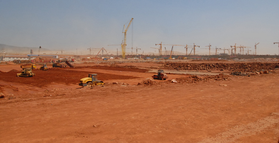 圖中遠處其他單位施工的航站樓已經(jīng)展開主體施工。
