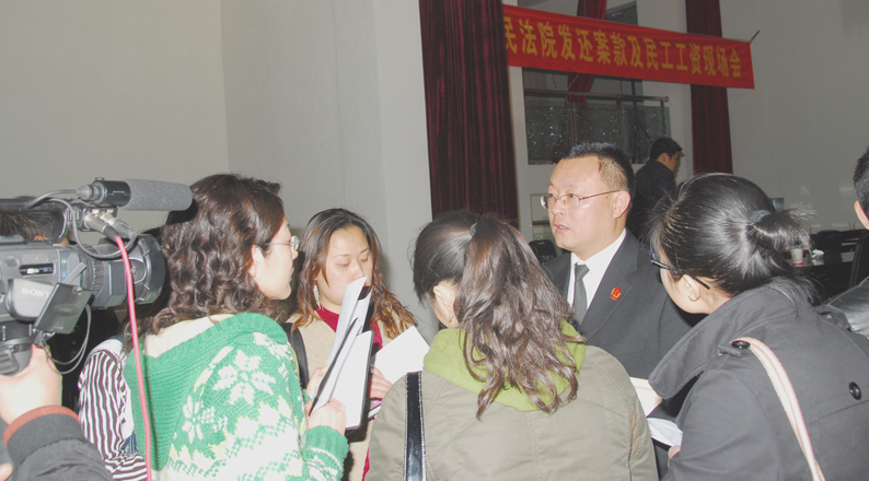 昆明市中級(jí)人民法院于1月7日在云南建工第五建設(shè)有限公司召開(kāi)發(fā)還案款及民工工資現(xiàn)場(chǎng)會(huì),將所執(zhí)行的被某裝飾公司拖欠的包括194萬(wàn)余元民工工資在內(nèi)的450萬(wàn)元案款,分別發(fā)還給云南建工第五建設(shè)有限公司第三直管部和在五建第三直管部相關(guān)工地工作的民工。