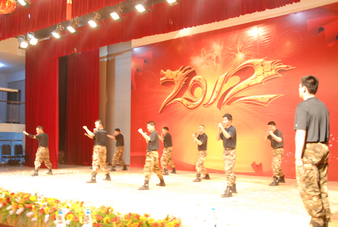 晚會在熱鬧的舞龍表演中開始,或優(yōu)美而感動的合唱《明天會更好》,或搞笑而有意義的小品《酒駕》、《招聘》、《交報表》,或充滿現代氣息的時裝秀、歌舞《恭喜發(fā)財》,或具有民族特色的舞蹈《七月火把節(jié)》、《西域風情》,還有精彩的武術表演、舞臺劇《青春圓舞曲》、音樂劇《狼和羊的愛情》、合唱《大中國》,以及第五直管部友情表演的具有警示和教育意義的班前教育十分鐘。各個節(jié)目精彩紛呈,職工們既是演員又是觀眾,無不激情獻藝。