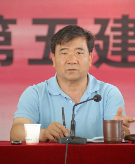 圖為5月10日公司董事長楊福和在第五直管項目部機構調整動員會上講話