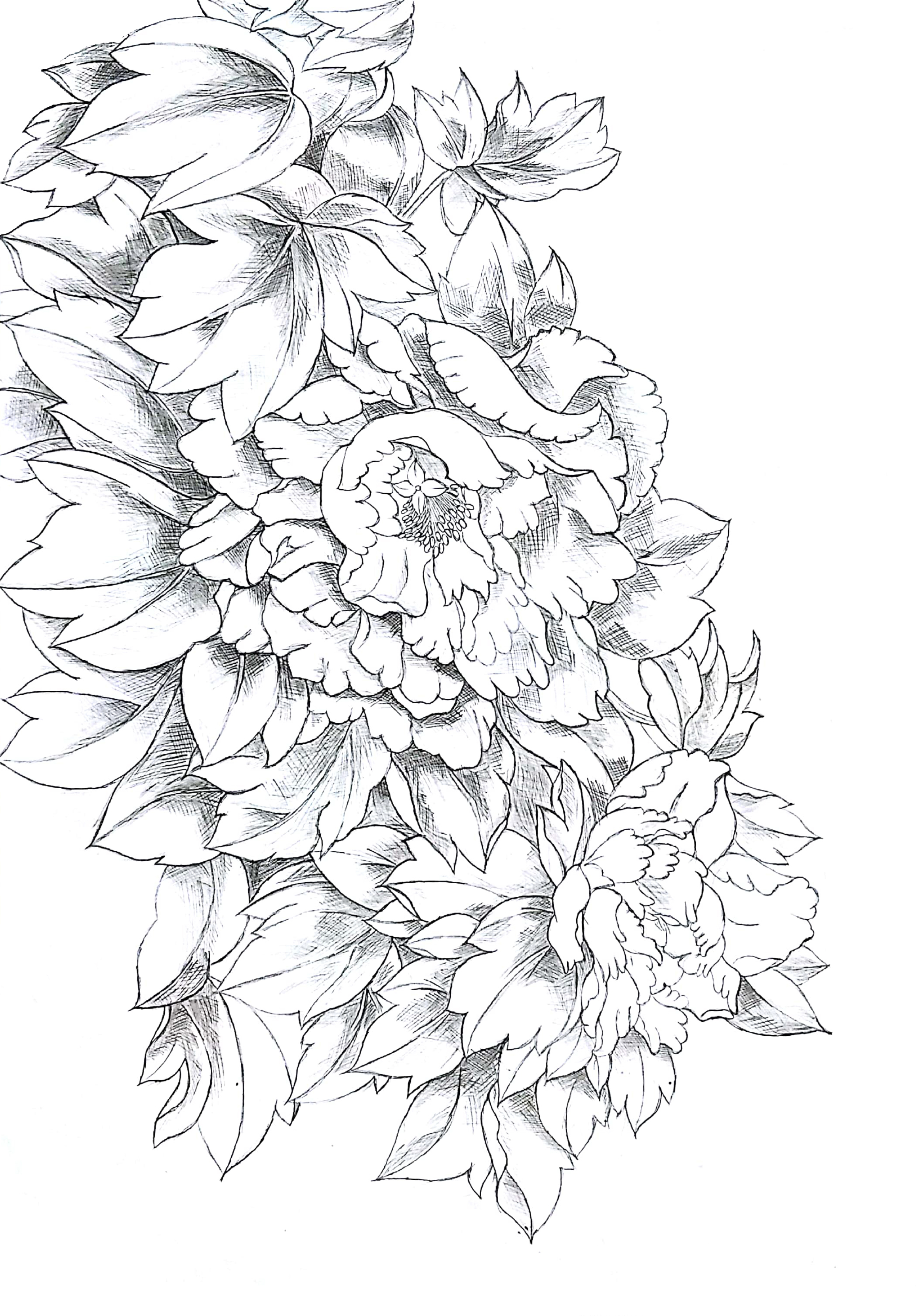 素描《牡丹迎冬圖》