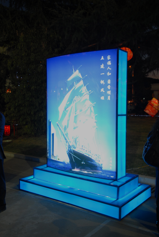 由基層各單位送來的參展作品異彩紛呈。最醒目的是主席臺(tái)旁的公司五大標(biāo)志性建筑燈箱,新機(jī)場(chǎng)項(xiàng)目的詩詞是機(jī)場(chǎng)項(xiàng)目部工會(huì)主席楊應(yīng)同志所寫的《念奴嬌.新機(jī)場(chǎng)建設(shè)有感》,表現(xiàn)了奮斗在工地上職工們的朝氣蓬勃;506分公司作品是他們自行設(shè)計(jì)的圖案,開頭是4,后面9個(gè)0,象征著公司今年要完成40個(gè)億的經(jīng)營任務(wù);門上的兩個(gè)工藝精美的古典燈籠結(jié)合我們501分公司的一幢幢現(xiàn)代建筑,古樸中透著現(xiàn)代的氣息;第一個(gè)獲得魯班金像獎(jiǎng)的505直管項(xiàng)目部的送來的作品立體又質(zhì)感;海天一色中揚(yáng)帆的船寓意著家福人和,菊香明月,五建一帆風(fēng)順……各式各樣的彩燈都表達(dá)著對(duì)五建公司的美好祝福。兩個(gè)集體趣味項(xiàng)目超級(jí)大腳板和抬氣球,分別由新機(jī)場(chǎng)項(xiàng)目部、景秀西苑項(xiàng)目部、502直管項(xiàng)目部和507分公司派出的代表隊(duì)參加,團(tuán)隊(duì)的力量一目了然。民間藝人表演的《變臉》、《頂碗》和魔術(shù)《飛桌子》以及劃彩船、騎毛驢等傳統(tǒng)項(xiàng)目吸引了眾多的觀眾。燈謎區(qū)人頭攢動(dòng),同時(shí)進(jìn)行的還有元宵湯圓和冰糖葫蘆大贈(zèng)送;民間藝人現(xiàn)場(chǎng)表演了剪紙、草編、畫糖畫、捏面人等節(jié)目,他們的手工作品都現(xiàn)場(chǎng)免費(fèi)贈(zèng)送給大家。