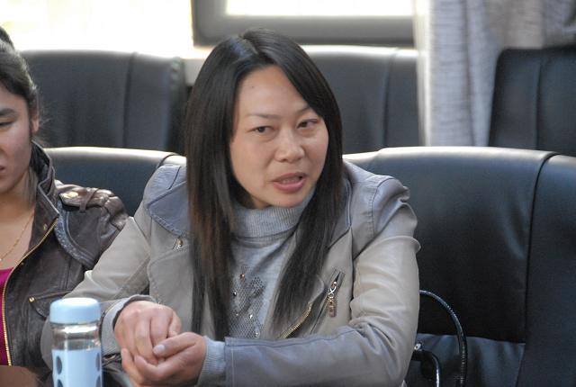 圖為五〇五直管部主人經(jīng)濟師者麗華在座談會上發(fā)言