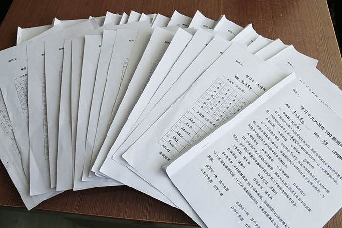 直五部黨員集中對(duì)《學(xué)習(xí)十九大報(bào)告100題》進(jìn)行測(cè)試
