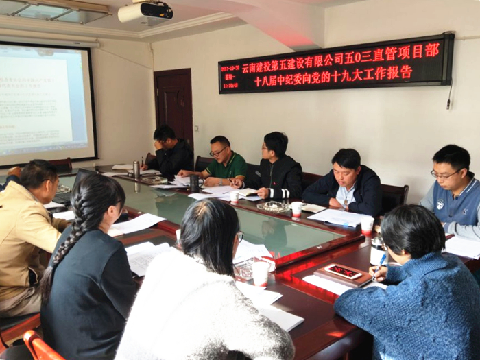10月30日,五〇三直管部在會(huì)議室,組織黨員干部職工12人召開學(xué)習(xí)會(huì)。 在學(xué)習(xí)會(huì)上,直管部學(xué)習(xí)了《十八屆中央紀(jì)律檢查委員會(huì)向中國共產(chǎn)黨第十九次全國大會(huì)的工作報(bào)告》。直管部黨支部書記要求黨員干部要認(rèn)真落實(shí)黨風(fēng)廉政建設(shè)各項(xiàng)規(guī)定,從我做起,廉潔自律,筑牢思想防線。進(jìn)一步加強(qiáng)直管部的黨風(fēng)廉政建設(shè)。 &nbs...