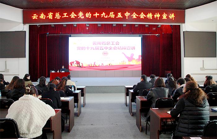12月18日下午,云南省總工會(huì)在公司宣講黨的十九屆五中全會(huì)精神及習(xí)近平總書記在全國(guó)勞動(dòng)模范和先進(jìn)工作者表彰大會(huì)上的重要講話精神。集團(tuán)工會(huì)副主席趙艷波主持宣講活動(dòng),公司工會(huì)主席冷蕊,機(jī)關(guān)各職能部門代表及各直管部、實(shí)體工會(huì)主席帶隊(duì)共96人參加宣講。活動(dòng)邀請(qǐng)了云南省工青婦干部學(xué)校社會(huì)學(xué)副教授、黨政辦公室副主任劉瑞華老師為公司做黨的十九屆五中全會(huì)精神專題輔導(dǎo)和宣講,還邀請(qǐng)了全國(guó)勞模李永山、云南省勞模魏東作…