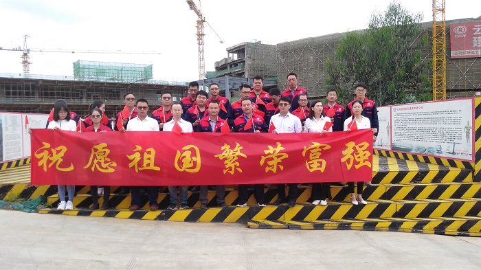 7月19日,為慶祝中華人民共和國成立70周年,充分激發(fā)愛國、愛黨、愛企的熱情,路橋二部工會在五華區(qū)西翥自來水廠建設(shè)項目開展“歌唱祖國 同唱國歌”主題活動,在昆領(lǐng)導(dǎo)班子成員、二線管理人員、西翥水廠項目管理人員、新進員工共計23人參加活動。 活動中,全體人員合唱了《中華人民共和國國歌》《我和我的祖國》《建投之歌》,并在演唱結(jié)束后高聲齊呼“我愛祖國、同唱國歌”、“堅韌不拔眾志成城、愛崗…