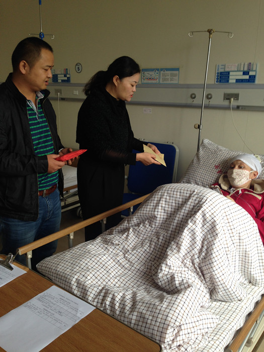 9月17日上午,公司工會(huì)常務(wù)副主席何君、第六直管項(xiàng)目部書記楊峰等一行人來(lái)到云南省腫瘤醫(yī)院看望了公司第六直管部海外職工姜建明患病的妻子,并送上了慰問(wèn)金,其中包括集團(tuán)工會(huì)及公司工會(huì)慰問(wèn)金5000元,第六直管項(xiàng)目部愛(ài)心捐款19070元,共計(jì)24070元。 2013年7月,姜建明的妻子經(jīng)云南省腫瘤醫(yī)院確診為卵巢腫瘤入院進(jìn)行治療及手...