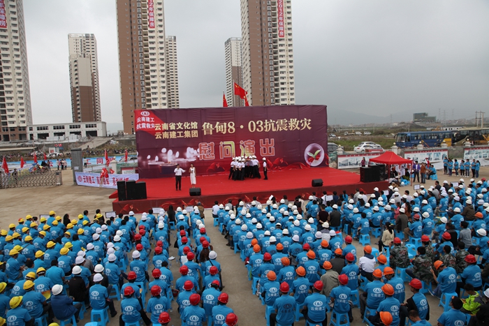 ??? 9月20日,集團(tuán)與省文化館在昭通市昭陽區(qū)2012年保障房項(xiàng)目部聯(lián)合舉辦的抗震救災(zāi)文藝演出。慰問演出中,參演節(jié)目精彩紛呈,舞蹈、獨(dú)唱、小品、雜耍等節(jié)目各具特色,彰顯了建工人高原鐵軍的精神。 ??? 公司大型詩歌劇《決戰(zhàn)魯?shù)?感恩大愛》以旁白,舞蹈,對白等多種形式重現(xiàn)了抗震救災(zāi)、后勤保障、愛心捐款、愛心獻(xiàn)血等過程中的真人真事,動人瞬間,贏得了觀眾的陣陣掌聲,并獲得了集團(tuán)領(lǐng)導(dǎo)的高度好評。 ???…