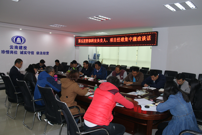 3月27日上午,第五直管項目部班子成員及紀檢委員組織各項目經理、科室負責人共17人進行集中廉政談話。 會議學習了《關于轉發(fā)省紀委對各企業(yè)、高校等違規(guī)違紀典型問題通報的通知》、《關于七起違反中央八項規(guī)定精神典型問題的通報》、《黨政領導干部任職回避暫行規(guī)定》、中央“八項規(guī)定”、“六項禁令”、《云南省黨政領導班子“一把手”監(jiān)督辦...
