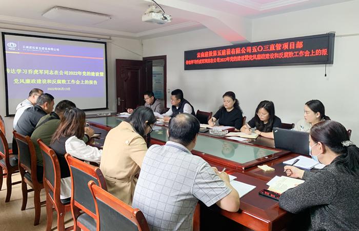 五〇三宣貫學習喬虎軍同志在公司2022年黨的建設暨黨風廉政建設和反腐敗工作會會議精神